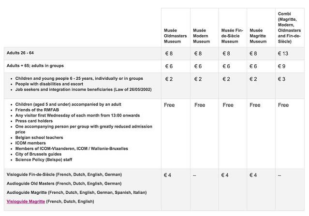 我特别喜欢皇家美术馆的一点,就是这里的票价十分十分的便宜。26岁以下的青年,如果买四个美术馆的通票,仅仅需要3欧!!这简直比一个华夫饼还便宜啊。所以要参观一个以上的美术馆的话,最好还是买四个美术馆的通票(表里的最后一栏)。