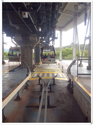 在缆车月台就看到了,到处都是hello kitty的装饰,很有欢乐的气氛。排队虽然人多,可是工作人员很有效率,大概半小时就到我们了