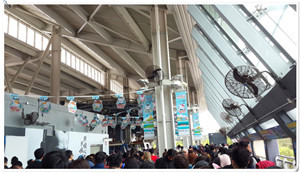 这个大型的建筑物就是昂坪缆车站,经过天桥或者是地面通过,蓝色的二层上面就是售票处了。因为来到这里已经11点半,时间也不早了,所以远远地就看到有已经不少人在排队买票。忍不住偷偷开心了一些,还好我们是提前去昂坪官网订的缆车票,可以不用排这条队!不然得浪费多少时间呀