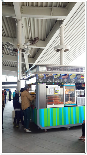 刚好肚子饿坏了,售票处旁边居然很贴心地有点心售卖亭!回来看照片才发现,照片中的爱尔兰女生就是后来和我们同一部缆车的乘客哦,她和其他外国游客吃的都是鱼蛋。一说起咖喱鱼蛋,几乎和鸡蛋仔一样,都是大家对香港小食的基本印象