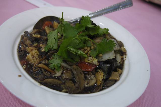 罗汉斋,有香菇、口蘑、金针菇、玉米、松仁、胡萝卜、白菜、发菜、木耳