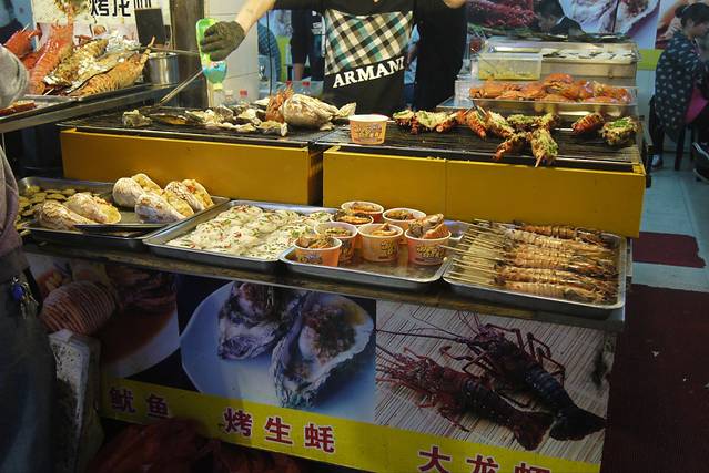 由于饿货饿了一天,所以我们汇合之后立马冲出去找夜宵吃。被路口的烧烤摊馋住,于是点了大鱿鱼、生蚝、茄子、韭菜、金针菇和花蛤,好吃哭!!!