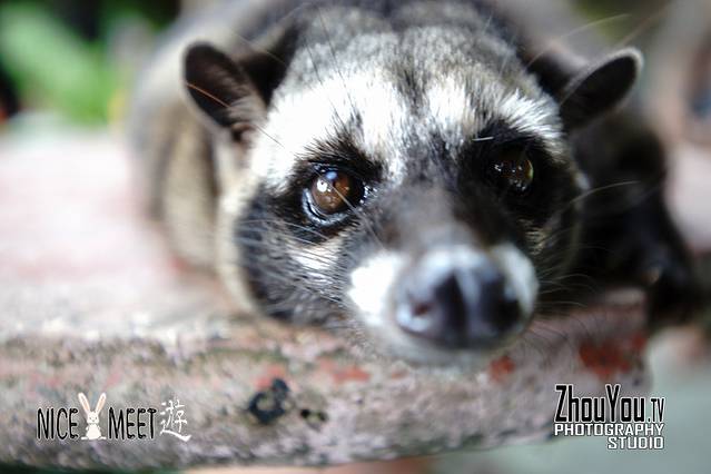 HELLO,麝香猫~萌萌的胖身子,懒懒的挂在树上睡大觉,一点也不怕人。