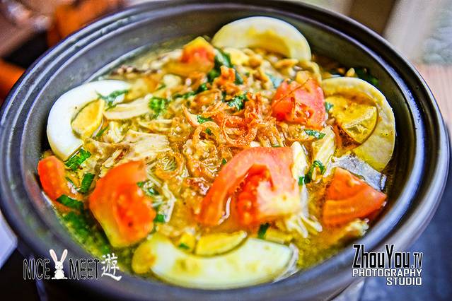 *点了几个特色菜,Nasi Tumpeng(咖喱饭套餐)、Soto Oyam(蔬菜汤面)、甜品Bubur Ingin(牛奶紫米露),这些都是由新鲜蔬菜、鸡肉配以当地特有香料烹制而成,就连甜品都有浓厚的香料味道,餐后真真是充分感受了菜品中的印尼风情。