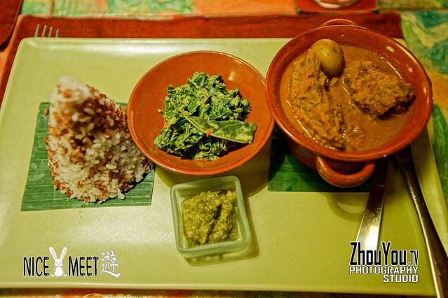 Beef Rendang,其实就是炖牛肉而已,那个绿叶菜一点都不好吃。