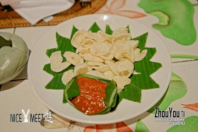 开胃小食居然是虾片(蘸酱口感一般)。印尼人很喜欢虾片,在超市会见到很多种虾片。