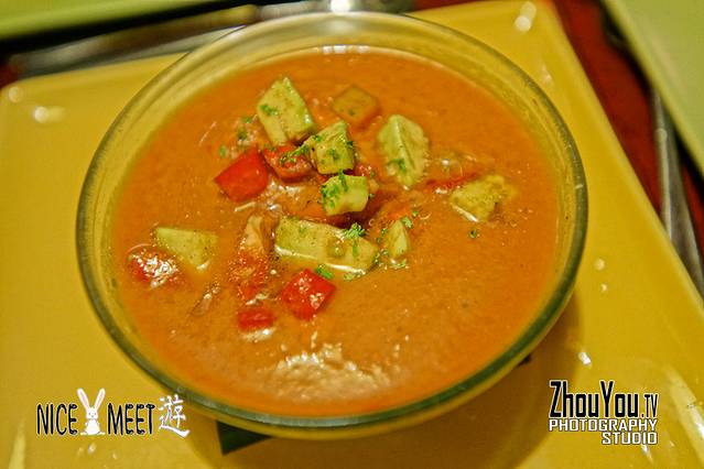 Andalusian Soup,冰镇水果汤,香料十足,味道非常奇特,不建议尝试,但是好奇心非常强的,那就试试吧,谁喝谁知道。