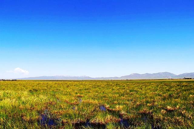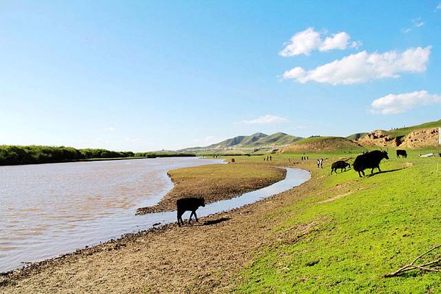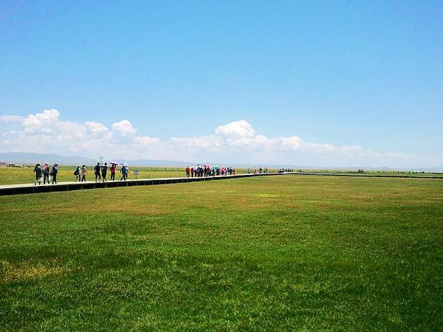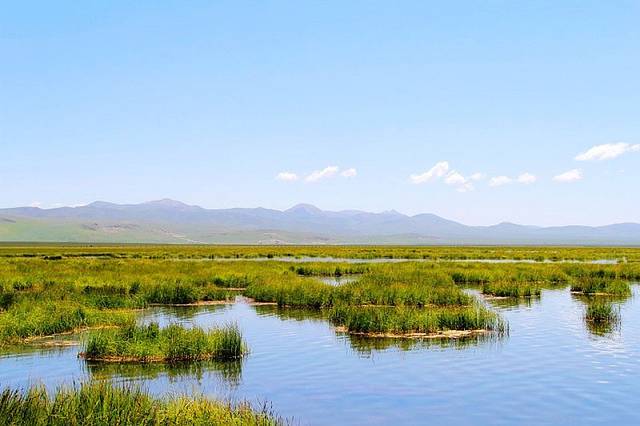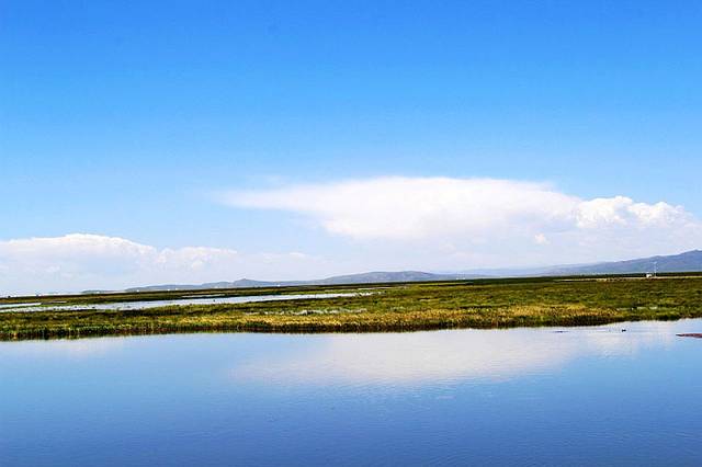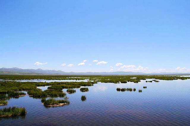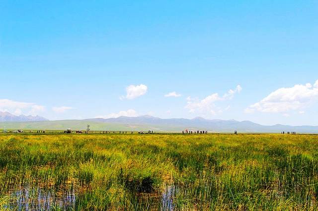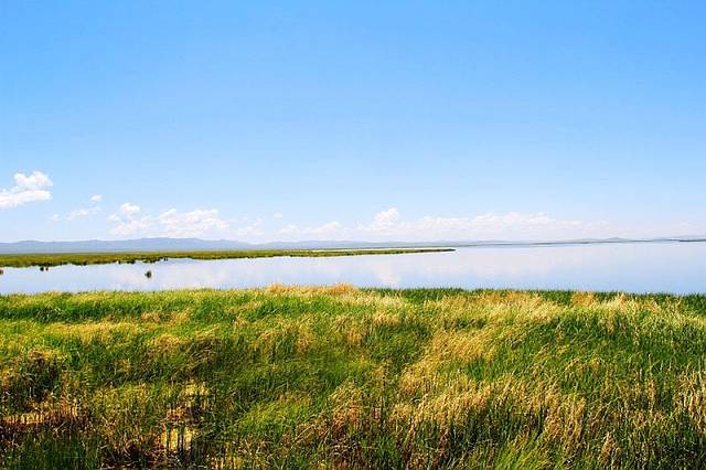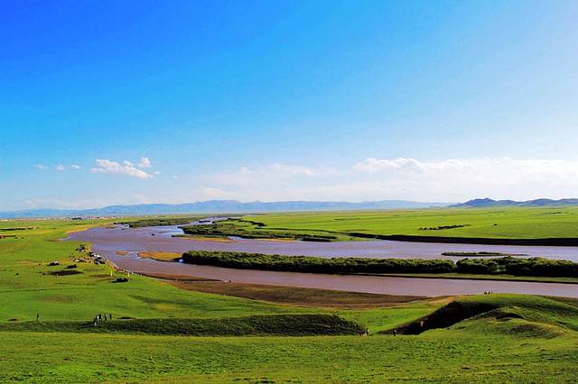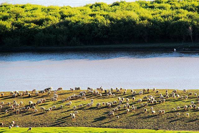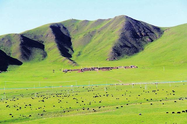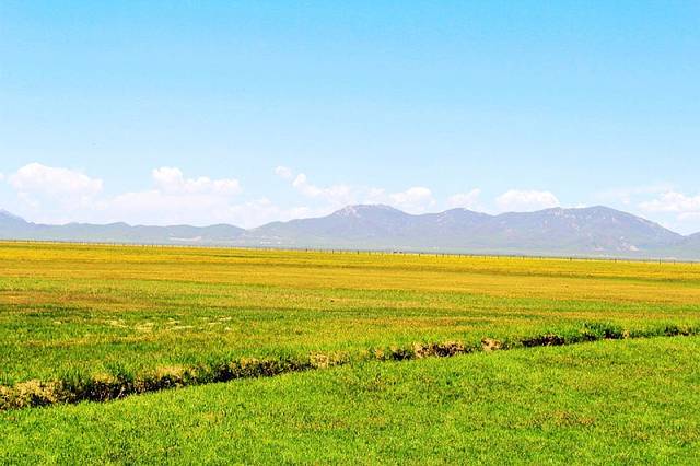 广阔的热尔草原一片碧绿,来到草原上,你的心也会随草原而开阔。放眼望去,除了绿色还是绿色,偶尔有一片星星点点的白色在移动,反而为草原更增加了一些生动。