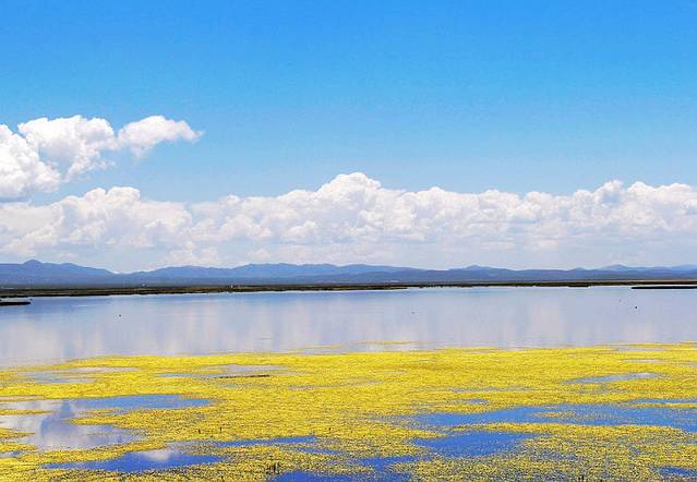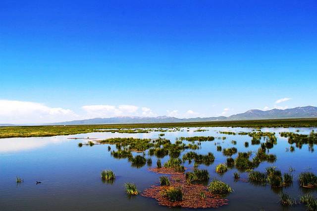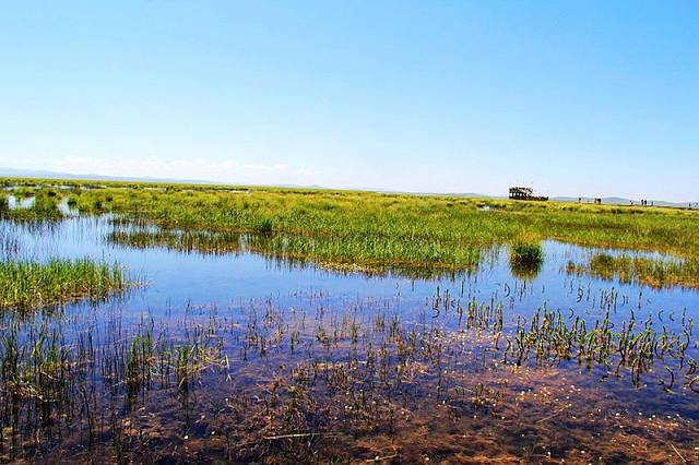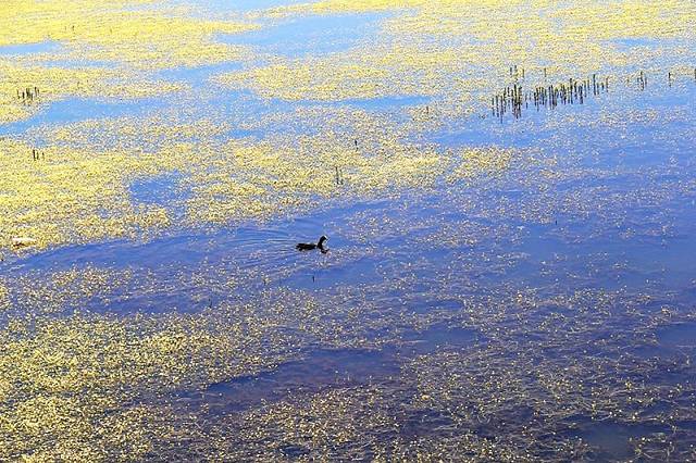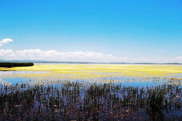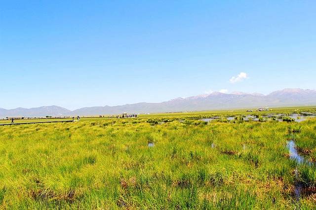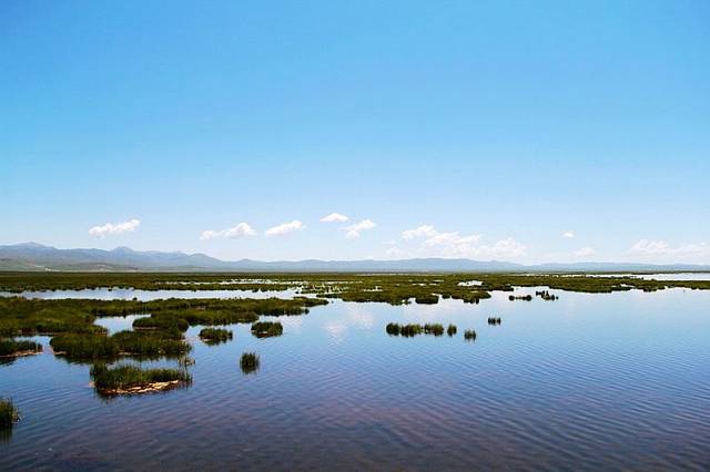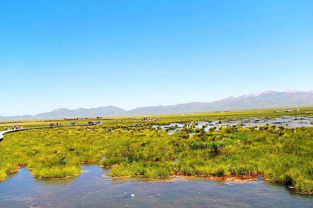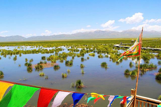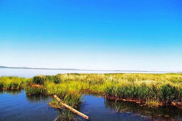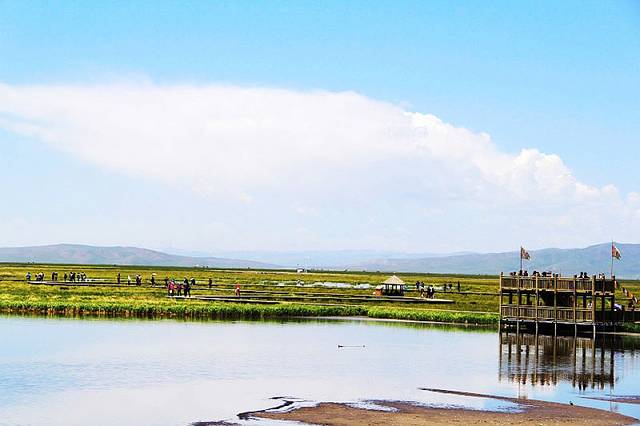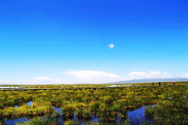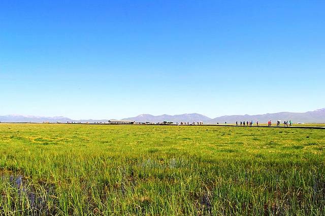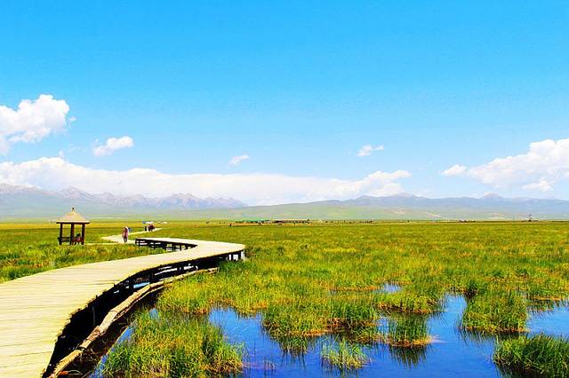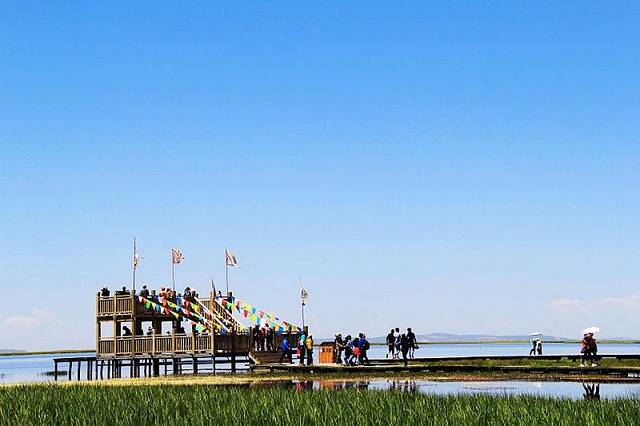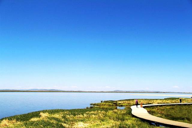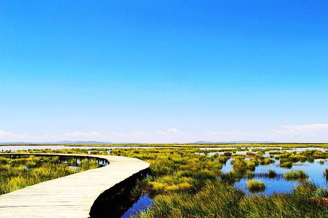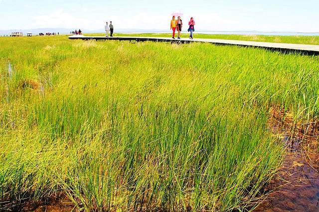 湖边建有木质栈桥,一直延伸到水中,沿着栈道走到湿地深处,沿途都是拍照的好场所。