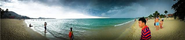 乌云有点逼近了。意犹未尽还是得返回大道。一路的加速啊,终于在暴雨落下前一秒我们奔到了拉迈海滩!说实话,个人觉得拉迈海滩沙子都没有查汶海滩的好,黄黄粗粗的,都不细腻。海水倒是比较蓝,这边海滩的酒店也比较高端一点说~