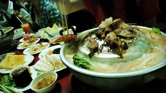 餐馆名字不太记得了,但是真的菜品和味道超赞的!泰式特色烤锅和煮国结合在一起,169铢/人。咱又急着吃没好好拍照了 = 。=