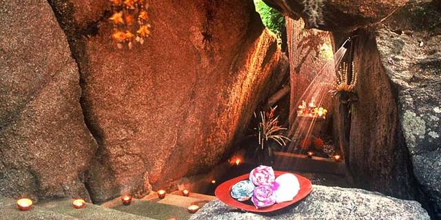 SPA店依山旁海,就这山中的大石头来打造了换衣室和淋浴室,清凉又惊喜。