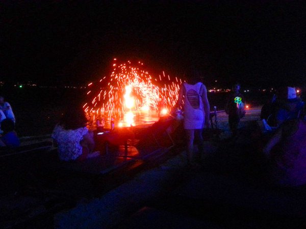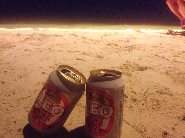 这是留在苏梅岛最后一个夜晚啦,突然觉得时间是被偷走的。提着几罐啤酒穿过小花园到沙滩上盘腿而坐,远处山腰上在嘣嘣放着大礼花,前边的海浪中不时有对对情侣拉手路过,或窃窃私语,或嬉戏打闹。风也停了,多希望时间也这么被按下暂停键。