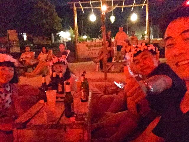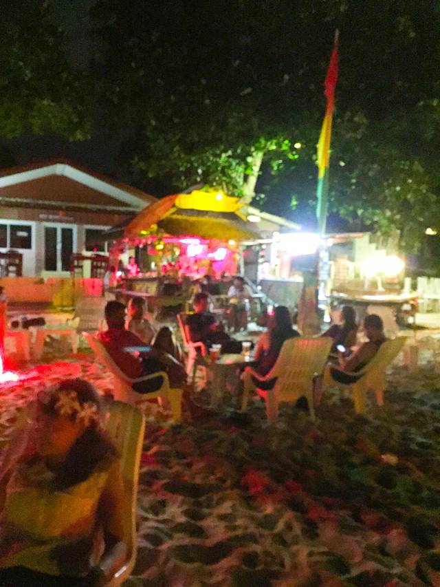 这边感受够了我们又换根据地到我们Al's酒店旁边的一个迷你吧,这边就特别安静。有个黑人叔叔在就着吉他伴奏唱歌,小朋友在用沙子堆城堡,和着海浪的声音再来杯Mojito吧。价格也挺适中的,啤酒鸡尾酒120铢/杯,威士忌和伏特加180铢/杯。