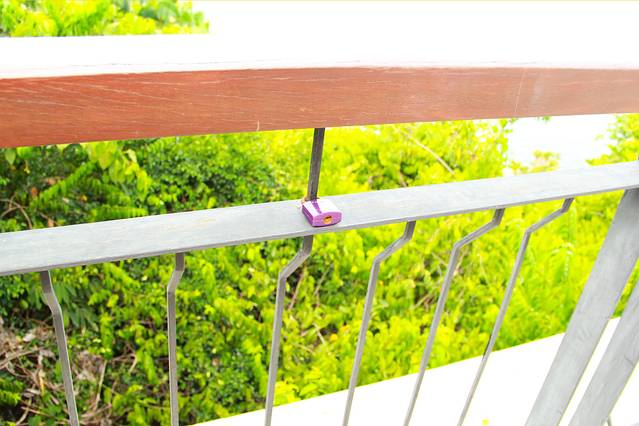 在长长的护栏上,零零散散地挂着一些同心锁。一对对有情人儿的名字也刻在上面。终成眷属吧。