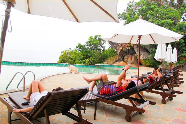 用完早餐后去享受了一下酒店泳池,从这个角度拍下去好像池子就和大海连在一起的说,哈哈。