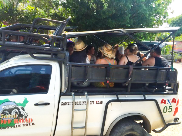 那蒙瀑布是在大山里面,可以选择步行或者坐车。门票费用是100铢/人,然后坐上这种车车。票据一定要收好昂,因为参观完瀑布后回来坐车的话是要验收票据的!