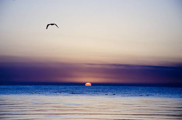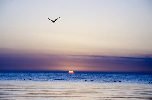不过青海湖日出的大美之景还真是等着我们。睡了三个小时之后起床往湖边走,然后等待着日出。水上还有鸥鸟,抓拍到一张鸥鸟飞翔天空的日出照,还是很美的,真心感觉这是一个绝美的地方,拍到如此美丽的日出也很满足。青海湖绝对是个出片的好地方。