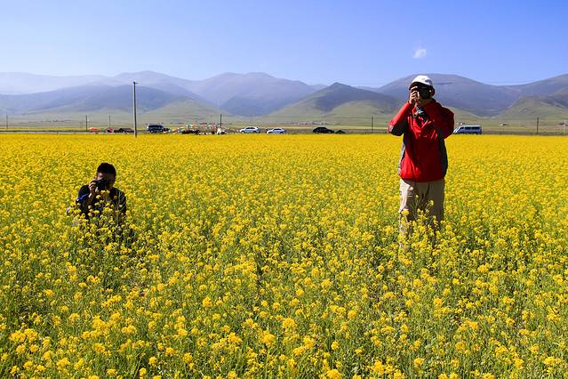 下午到了门源,油菜花海因为前三天的一场大雨没有了,没有看到花海算是今天最大的遗憾。不过还是能看到一些,高原的云低、天蓝还是很不错的。