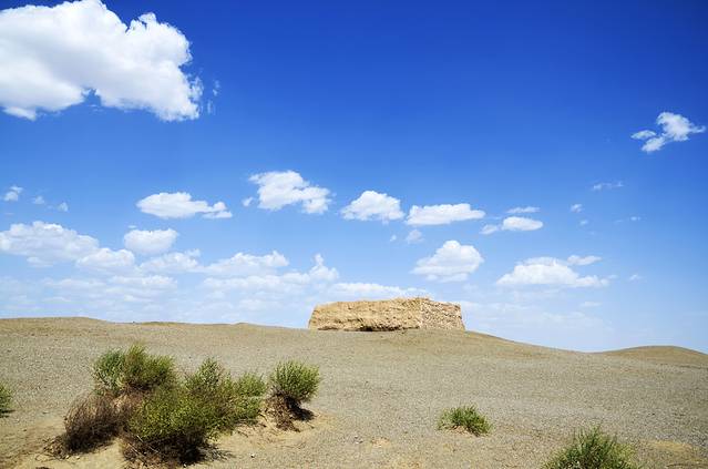 天空只有一半有白云,我只好走到另一个方向以求获得最佳的去景点,并拍取好的照片。其实玉门关还有个名字叫小方盘城,感觉这个名字更有意思。在玉门关停留的时间不是很久,也不是需要等待什么美景出现的,就这样出发去下一站。说到玉门关就不得不说汉长城遗址。春风不度玉门关真不是吹的,这里太荒凉了。