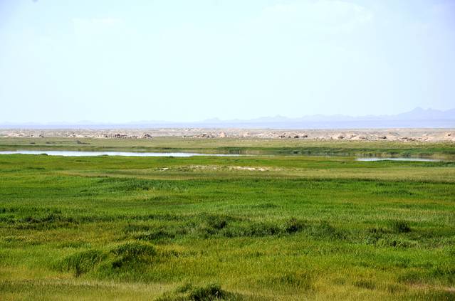 我不得不说我喜欢宏伟壮丽的风景,来到玉门关后,我没有一点走进去看的欲望,反而对其旁边的一片绿洲格外感兴趣。绿洲之中有一片湖泊,我想这也是绿洲的生机来源。我站在那里眺望、驻足了很久,看着远处的戈壁不禁对这片绿洲肃然起敬。