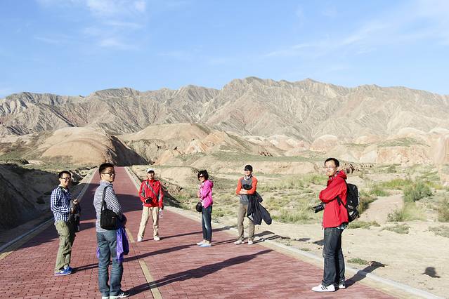 凌晨一点才睡觉,然后五点半起床去丹霞看日出。丹霞日出还是不错的,也拍出了很多不错的照片。与丹霞日出的相遇真是幸运,在五点半时还是不想起床,但听到驴友的声音后还是起了。到景区时也正好赶上5号观景台的车,拍的时机也不错。丹霞地貌也比较壮观,色彩、明暗很适合摄影。