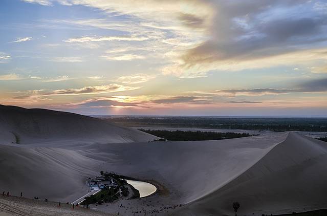 走到月牙泉,还是很凉爽的,看到山头升起的长庚星还感觉晚上就有完美的星空。月牙泉走近一看也就那样了,也许正因沙漠的衬托才使名气那么大,但却已成为认为修葺的水坑。