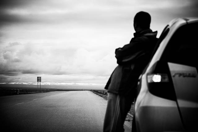 寂静的环湖公路、阴沉的天空,远处的青海湖,这才是真正的是行万里路,独自闯天涯