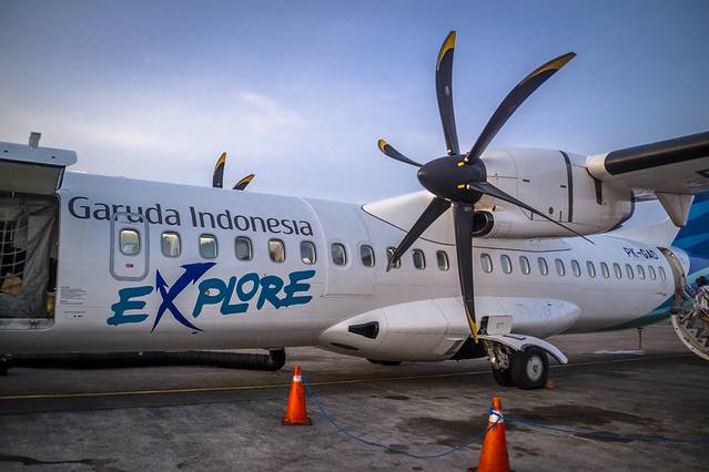 我们乘坐的飞机是ATR72型双螺旋桨飞机,可容纳差不多70人的小飞机,配备2名机长和2位空乘,还配有餐食(其实也就是小点心),从登巴萨机场到拉布汗巴焦差不多1个半小时,建议坐左边靠窗的位置,可以看到火山!