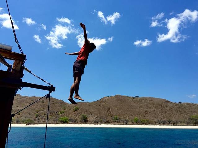 之前看张大枪游记的时候就想尝试跳船……可是偏偏中耳炎不让我有跳船的机会!我只能看着我们的领队小哥帅气的从船上一跃而下。