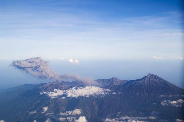 林贾尼火山 所以说选择正确的飞机窗口很重要,左边的小伙伴先说看有火山...紧接着就...在喷发..我是应该庆幸呢,还是应该担心?第一次看到火山喷发,浓浓的黑烟如一条黑色的巨龙冲天而起。印尼每年都会有火山喷发,来这里除了看海岛,海豚 鲸鲨以外,火山其实也可以作为备选的游玩项目,至少你选择一个正对火山的酒店,早上趁着吃早饭的时间,悠悠闲闲的就把火山给看了!