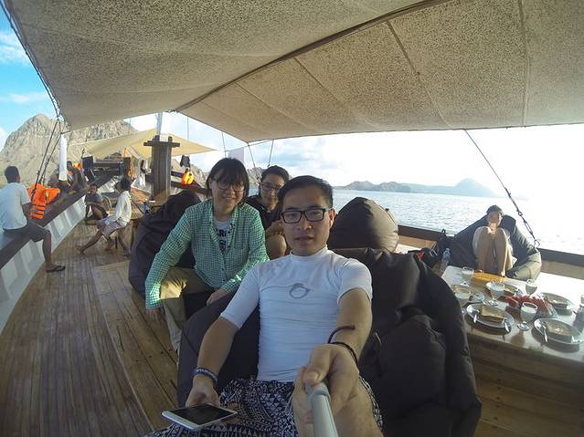 清晨4点,GANI说let's go hikking to see the sunrise... 好嘛~一起群人就浩浩荡荡的去爬山了..没想到这一爬就是2小时..一群人到了山顶,已经不行了。船长小哥Fian,厨师长Ari,Gani,陪着我们一起努力爬。Ari包里还背着N多饮料。虐死人!