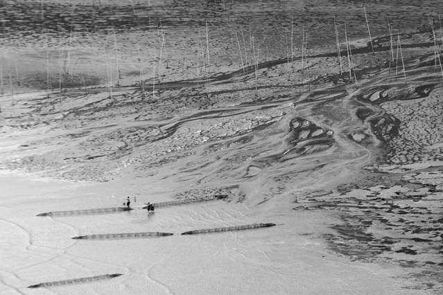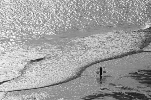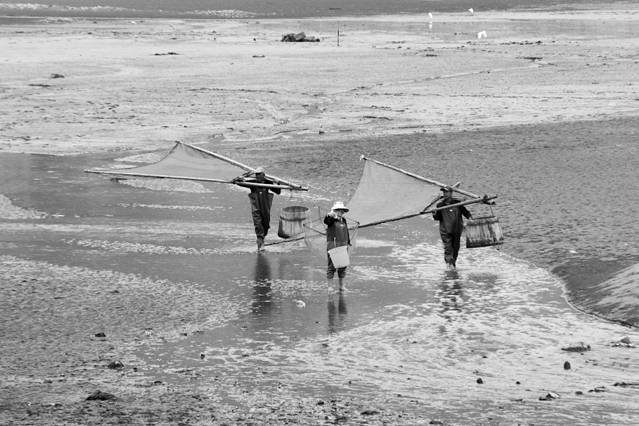 没有日出,但是之后的渔民收货海带的场景,很迷