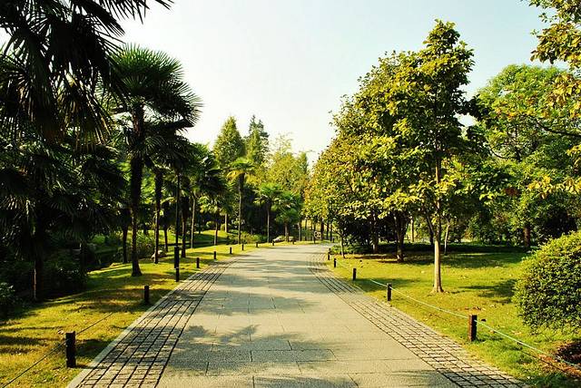 相比于北山路,南山路是公园一个接着一个,那满眼的郁郁葱葱,让人仿佛走进了绿色的世界。如果嫌走路累,租一辆自行车,迎着微风慢慢骑行,也是一大乐趣。