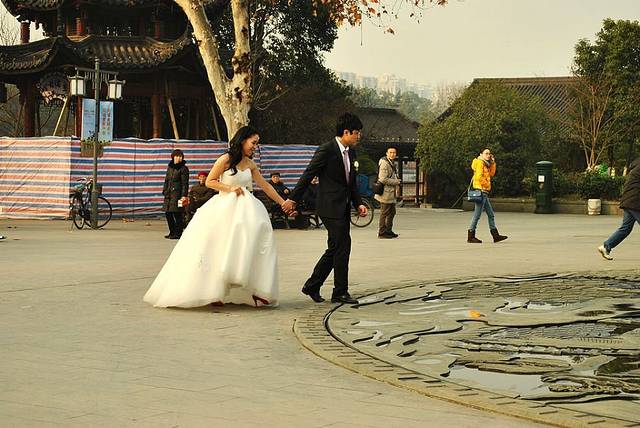凑巧碰到一对新人在这里拍婚纱照