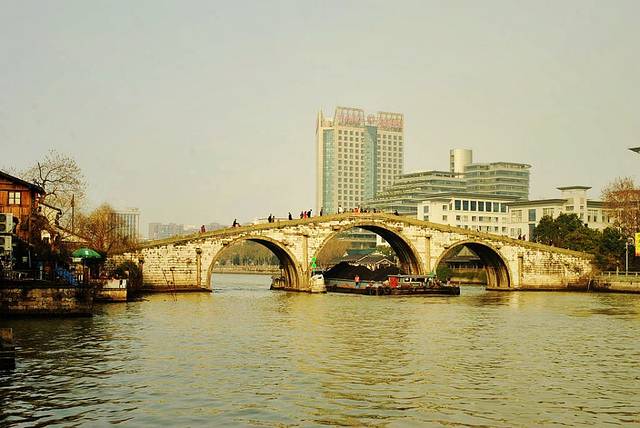 京杭大运河杭州终点的标志,杭州古桥最高最长的石拱桥,在古代,“宸”是指帝王住的地方,“拱”即拱手,两手相合表示敬意,每当帝王南巡,这座高高的石桥,象征对皇帝的相迎和敬意,拱宸桥之名由此而来