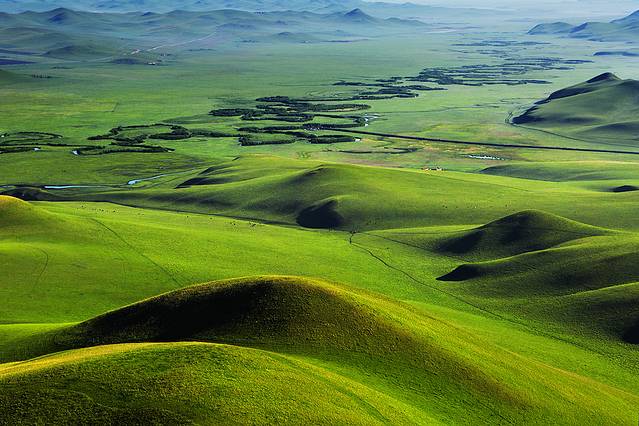 2.下一站是芍药谷,这个季节芍药花已经谢了,不过可以去看一看九曲湾,那曲折缭绕的河道宛若大自然留给乌拉盖的美丽纹身。