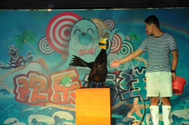 三亚目前唯一一家海狮表演剧场,挺不错的,孩子很喜欢。听说是来自南美乌拉圭的海狮,三亚这么热,不知道能不能适应,不过从表演的效果来看,海狮的适应能力很强。海狮君,你辛苦了。。。。。。