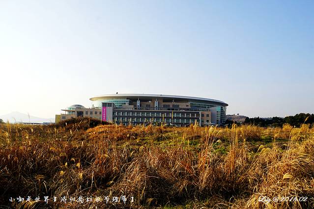 需要步行到这个远处圆圆的ICC(济州国际会议中心)门口对面的车站坐600路回酒店。