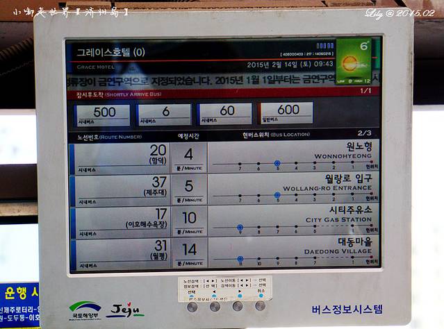今天的线路比较简单,依然是公交车出行,这次不敢托大自己直接去坐车了,走之前去问了问前台MM,她很贴心的给我边写边说,出门左转,经过几个路口,马路对面的Halla Hospital门口坐740,于是我记住了汉拿医院叫做Halla Hospital,在这两天的时间里坐车回宾馆和司机都是说的Halla Hospital,如果住在莲洞的可以参考这个说法。