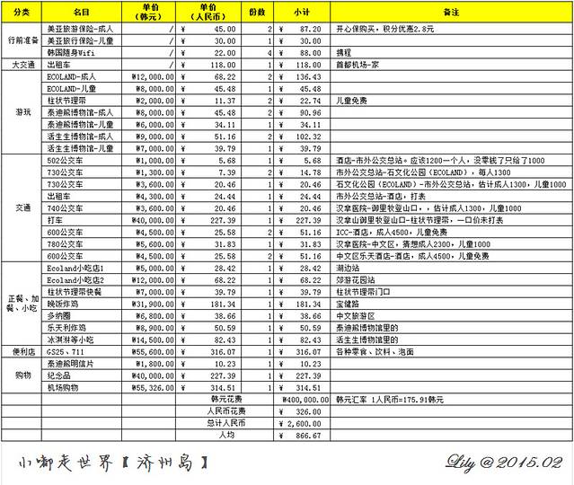 当天直接取了40万韩元,到最终回到机场离开的时候,手头还有5万多韩元没用完,在机场消耗掉了。需要买的东西都提前在乐天免税店官网买好了,在济州岛全程未刷卡,全部用的现金交易。