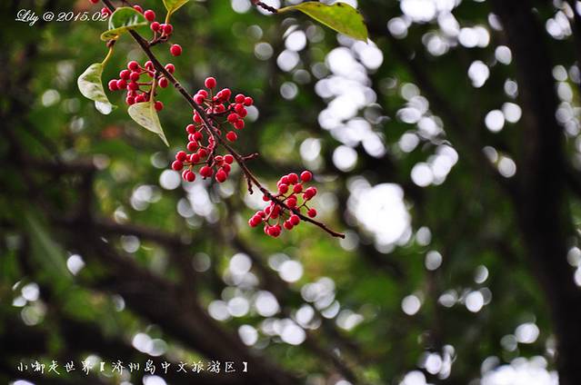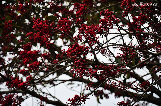 去活生生博物馆要走过长长的小路,路遇红豆数棵,阴霾的天空下依然红的喜人。