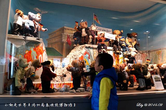 这一切是出乎我的意料之外的,给了我惊喜也给让我遗憾,这些是在泰迪熊历史展馆里,我看到各个历史场景的展台,指着小熊随便给小嘟讲的,当时心里觉得柏林墙的倒下、泰坦尼克这些东西对小嘟来说有些太复杂了。没想到他记得清清楚楚的回来问姥姥,让姥姥猜这是什么?小孩子的记忆力实在是太强大了,不知不觉中其实历史知识已经以通俗的语言和泰迪熊表演的动画模式让他记住了,以后学习到相关知识的时候,也许他脑海里会浮现出这一幕幕可爱的泰迪熊。惊喜之余,也诸多遗憾,如果知道能有这样的效果,我一定会一个场景一个场景的给他讲下去,还有经济大萧条、香港回归、二次大战、宇航员登月……而不是只讲这三两个。毕竟,用泰迪熊展示的动作,小孩子会记忆深刻吧。