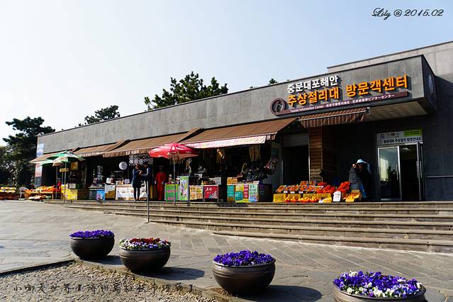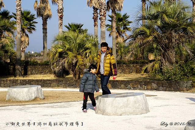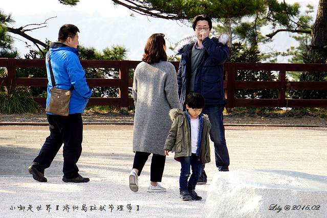柱状节理带指的是一种地质现象,火山喷发形成的特殊地质形态,沿着济州岛南部海岸线两公里长。公园门口广场上熙熙攘攘的人流,让人有了著名景点的感觉。