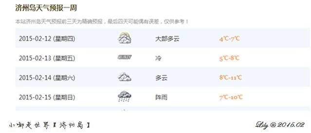 查了下天气预报,北京这几天的天气最高气温是10度左右感觉很是温暖了,这边济州岛的温度好像也差得不是太多。