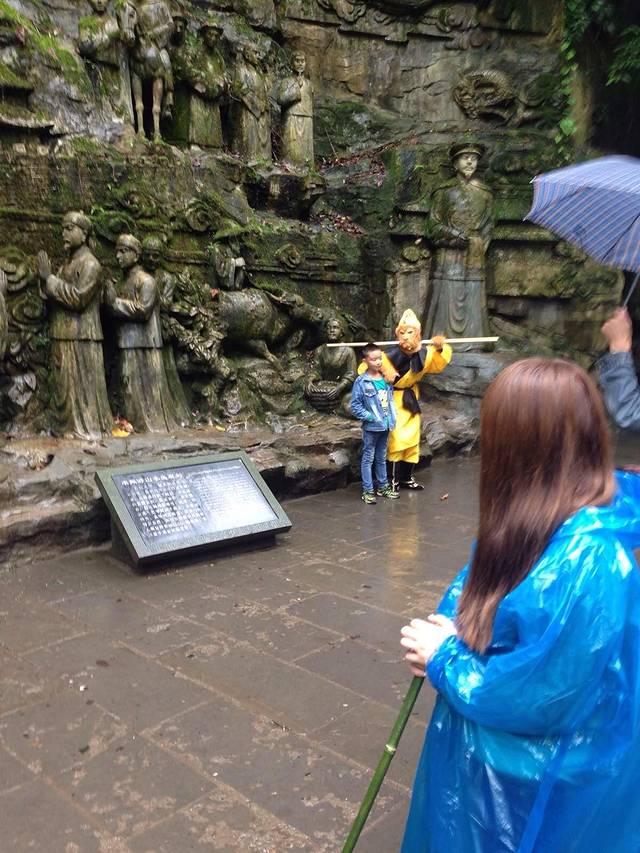 6点起床,吃完早点。买了两个棍子,说是打猴用,但最后登山全靠他了。本来预计的花90元坐大巴前往雷洞坪,往返车票,到了车站被当地揽客忽悠坐了他们的私家车,150元到万年寺,改变了预计行程,先去万年寺、白龙洞、清音阁、一线天和猴区,与旅行团错峰