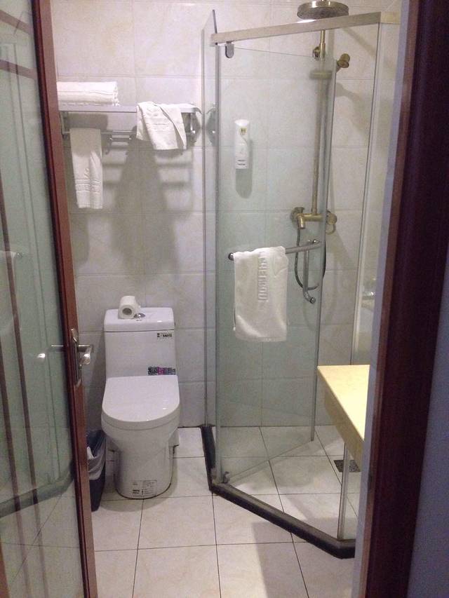 还算周到,淋浴是玻璃门隔开的,省的弄到马桶上,想想后几天峨眉山的住宿环境,这已经算不错了