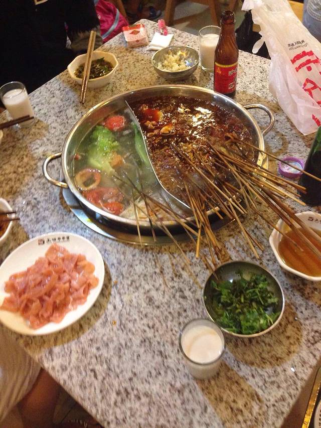 由于还在下雨(晚上6点了,这他妈雨下一天了),也没啥好逛的,干脆还是去吃吧,来到了不远的玉林串串香总店,想着总店吗,味道应该不会差,但是还真不如蜀九香,主要是小料太腻了,不香反而有点糊口,倒是真便宜,4个人180搞定。