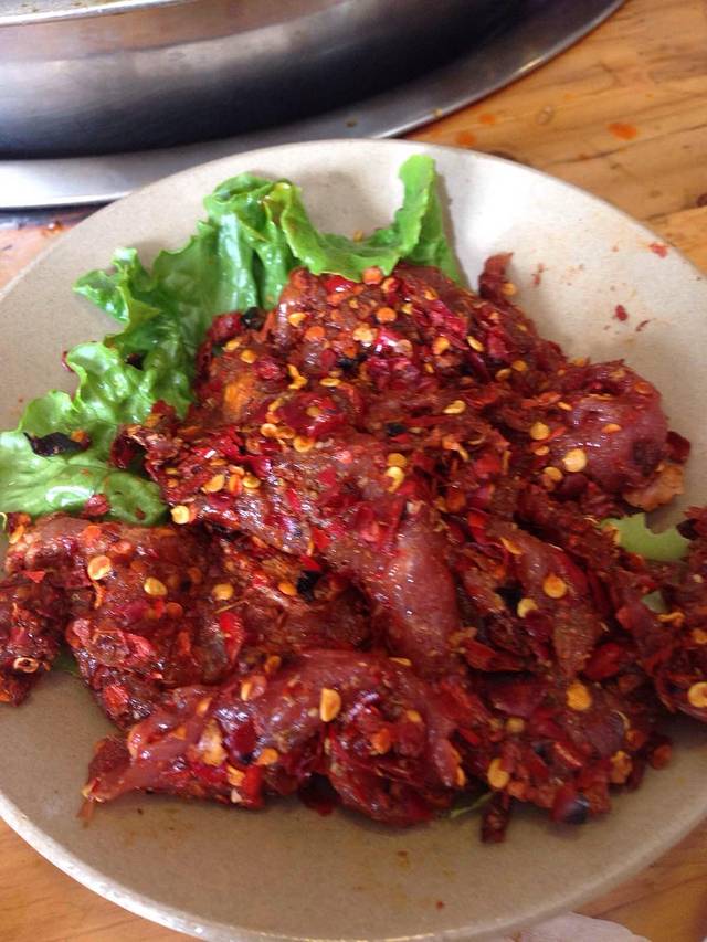 毛血旺,除了辣没任何味道,怀疑厨师是不是喝了,还把迟娃胃吃伤了,幸亏我没怎么吃
