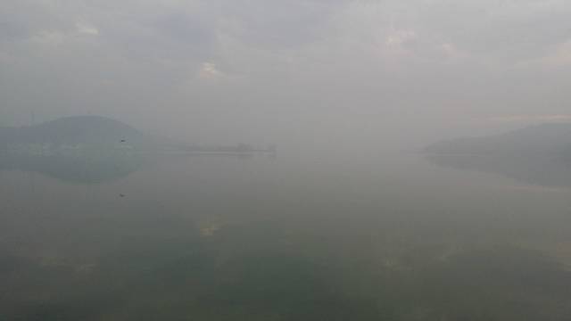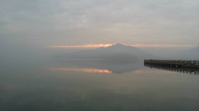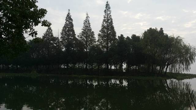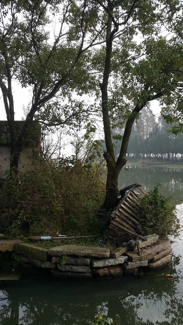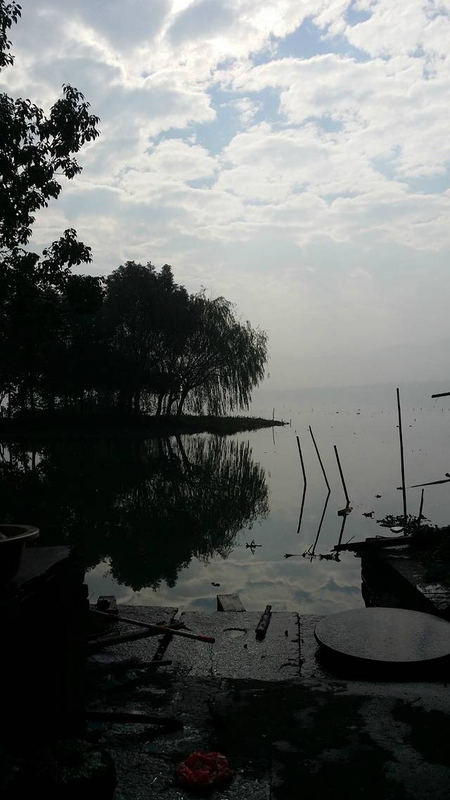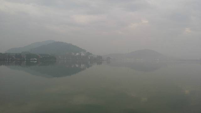 吃了早点看时间还很早,心想既然来了,不如到外婆家去看看。清晨的东钱湖湖光山色烟雾缭绕,沿着环湖步道一边欣赏美景,一边打听外婆的故里周家。由于语言不通,村子又拆迁了,费了老大劲却走到去大公村的那条路,一看时间不多,还要回杭州,只能隔湖从远处眺望外婆的村庄,不能不说这是此行的一大遗憾。
